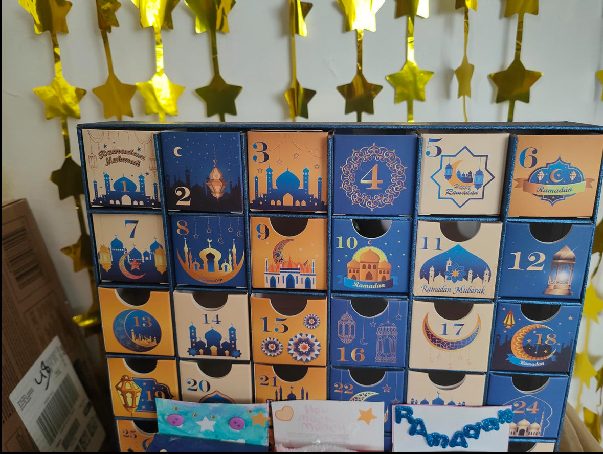 Begin on the first night of Ramadan and open one box each evening. It becomes a calm, intentional tradition that children look forward to throughout the month.